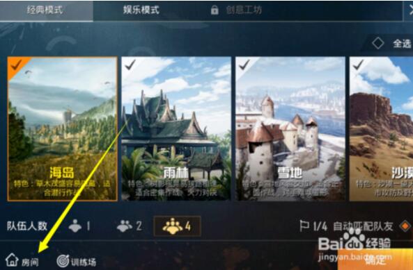 首先和平精英苹果手机用户打开游戏,点击左边的切换模式。 进入切换模式界面之后,点击左下角的房间按钮。 点进去之后就可以看见右下角有一个创建